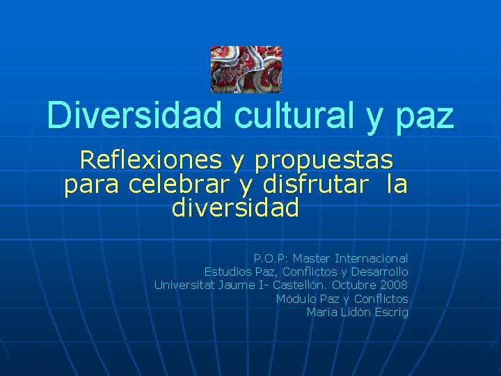 Diversidad Cultural Y Paz Reflexiones Y Propuestas Para