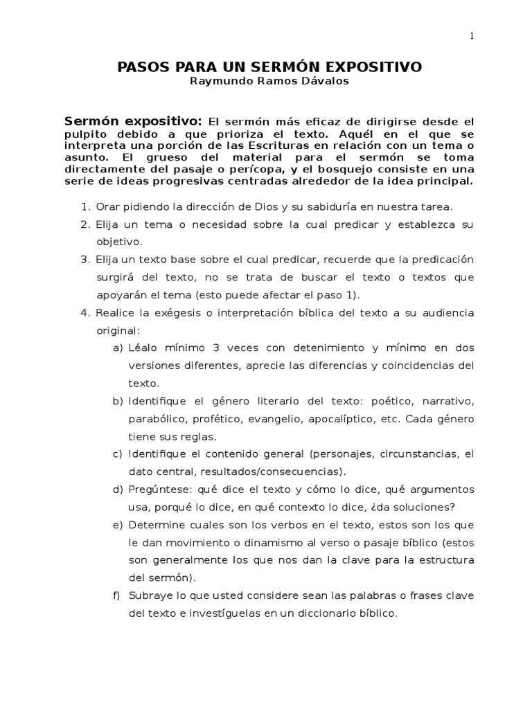 Pasos Para Sermon Expositivo Pdf Sermon Biblia